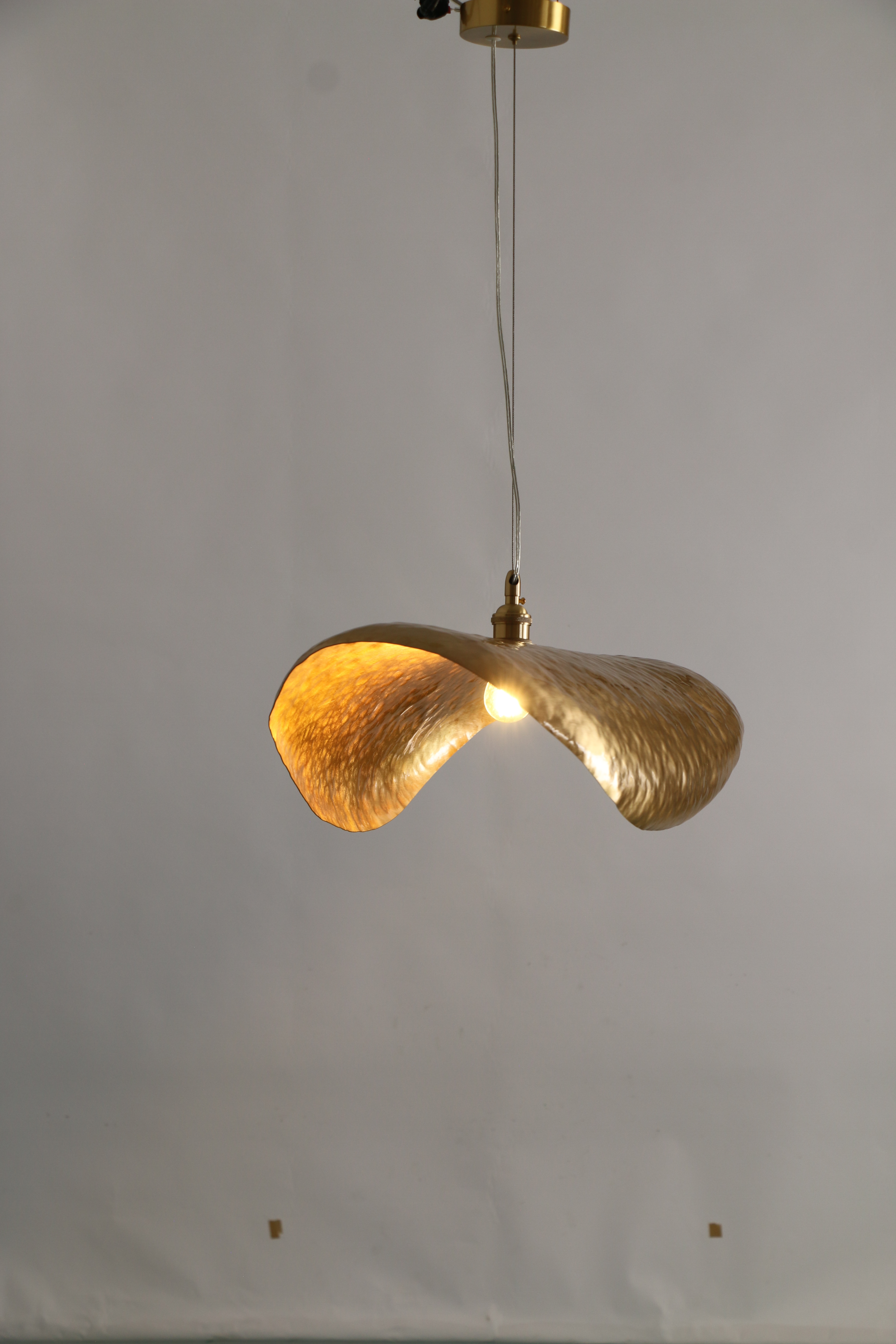 Diese Lampe, die komplett aus Kupfer oder Messing-Gold gefertigt ist, strahlt eine postmoderne Luxus-Atmosphäre aus und eignet sich perfekt für Villen, Wohnzimmer oder Esszimmer.Das einzigartige, künstlerische Lotusblattdesign verleiht jedem Raum Eleganz und Kreativität..